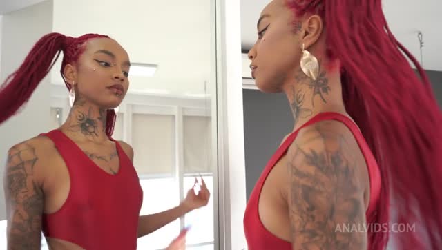 Lara Rouge, sexy Brazilian ebony cutie loves 2 dicks in her ass (Anal, DAP, 0% pussy, foot fetish, ATM, gapes, goth, alt model, 2on1 )